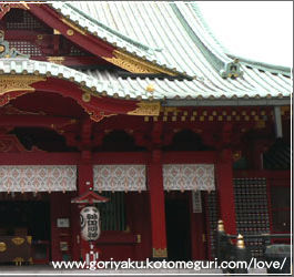 【縁結び】 神田神社の祭神の一人、大己貴命(おおなむちのみこと)は、別名 大国主命(おおくにぬしのみこと)。福徳円満、縁結びを授けてくだる神様として崇敬を集める神様です。 特に縁結びでは、男女の仲を取り持つだけでなく、あらゆるものの幸福を願って縁を結んでくれるといわれています。 神田明神の境内には大きな大黒様の像が祀られ、参拝者を迎えてくれます。 |