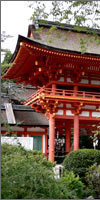 かつてこの地に住んでいた豪族・賀茂氏の氏神を祀ったのが始まり。7世紀の天武天皇の御世に社殿が造営されたと伝えられ、下鴨神社と並んで京都で最も古い神社のひとつです。 京都三大祭の一つ「葵祭」の行われる神社としても知られ、『源氏物語』や『枕草子』にも登場する上賀茂神社の祭神は賀茂別雷神。厄除け、方除けの神として信仰されています。 上賀茂神社では、本殿(国宝)の前にある重要文化財の御籍屋(みふだのや)にて結婚式が執り行われます。 |